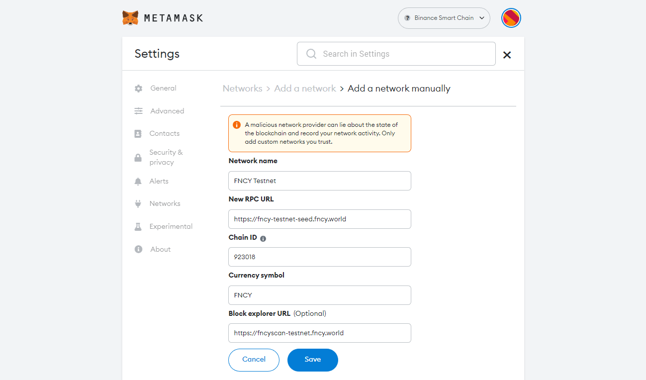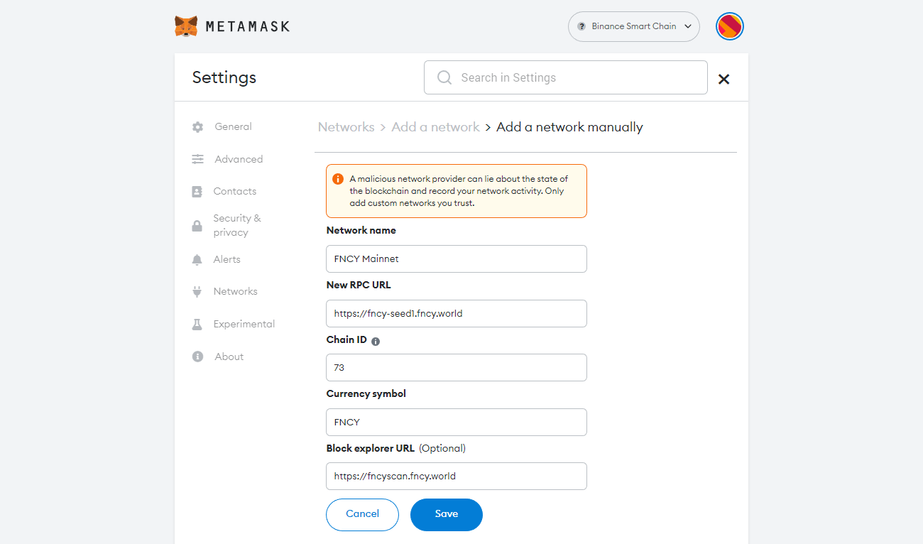 Use MetaMask for FNCY Chain