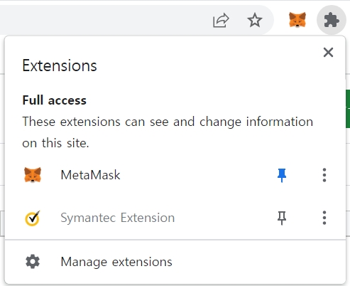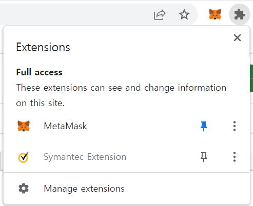 After installing MetaMask, click MetaMask in the extensions tab area in the top right corner to move to MetaMask welcome page