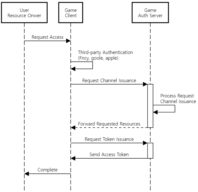 1. The game client requests token issuance to the game authentication server with the promised parameters.