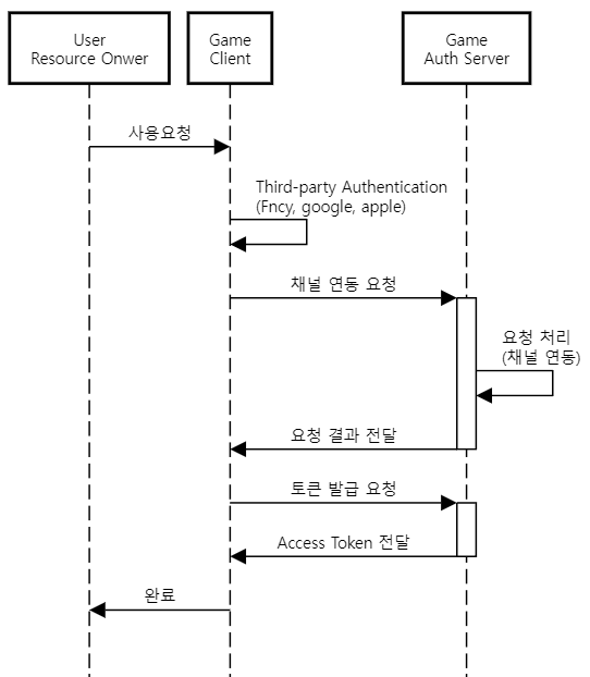 제 3자 인증 (Google, Apple, Fncy) 에서 발급 받은 Authorization Code로 채널 연동을 요청합니다.